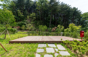 - 숲속의 집(단층, 복층) 이용 시 개별 테라스에서 야외 테이블, 바비큐 통이 무료로 제공됩니다.
