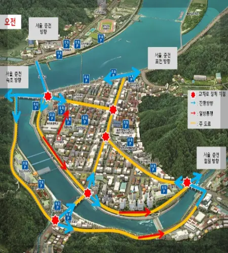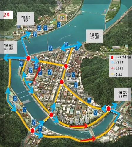 - ※ 내비게이션 국도 이용 시 중간 경유지로 '강촌' 또는 '의암댐' 설정
