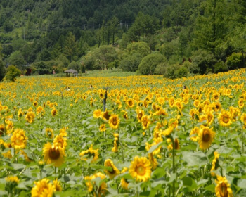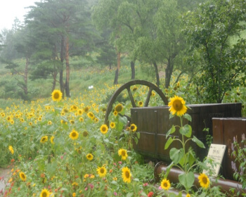 해바라기 백만 송이가 피어있는 강원도 태백의 구와 우 마을. 태백 해바라기 축제에서는 백두대간, 낙동정맥 해발 800m 숲속에서 산책화 휴식을 즐기고, 해바라기 밭 연못과 돌담길 정원을 관람하실 수 있습니다.
